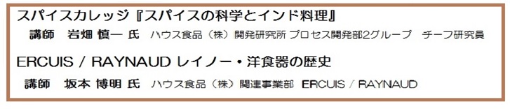 《スパイスの使い方と効能を知って 楽しい食の世界を広げよう》& 特別講演《ERCUIS / RAYNAUD レイノー・洋食器の歴史》